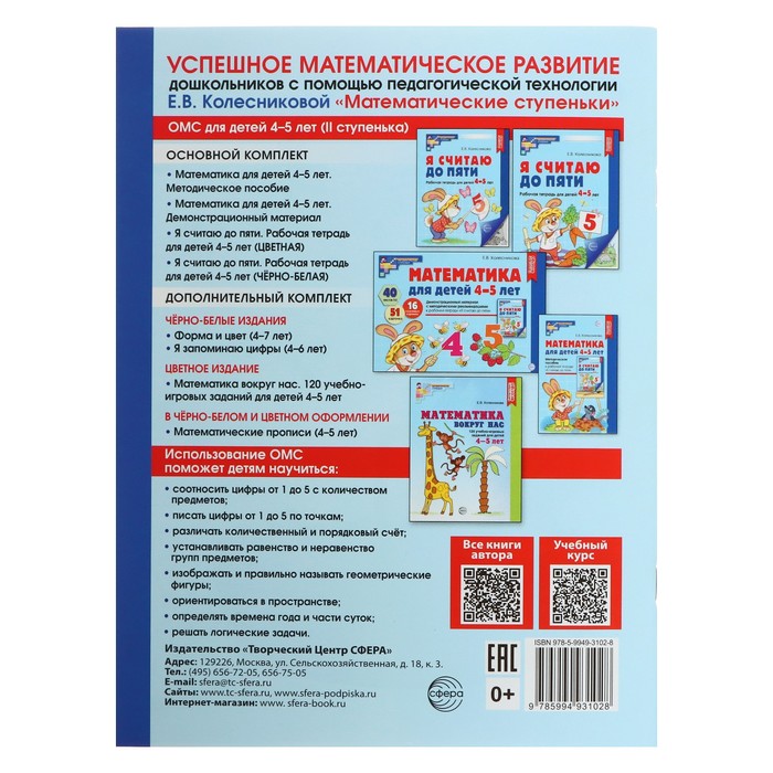 Материалы разработаны с учетом ФГОС ДО и входят в методический комплекс «Математические ступеньки». Тетрадь поможет детям не только освоить счет, но и подготовиться к занятиям по следующему уровню – «Я считаю до десяти».
