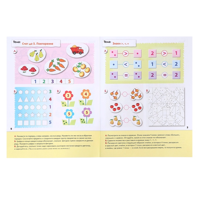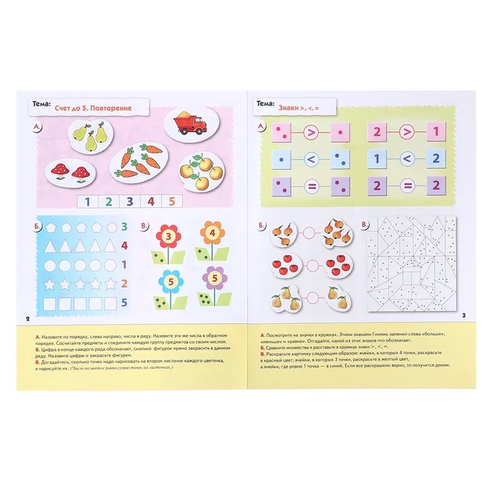 Рабочая тетрадь по математике для старшей группы дошкольников — это отличный помощник в подготовке к школе. С её помощью ребёнок познакомится с цифрами, счётом и основами математики в лёгкой игровой форме. Задания разработаны так, чтобы малыш мог заниматься как самостоятельно, так и с поддержкой взрослых.