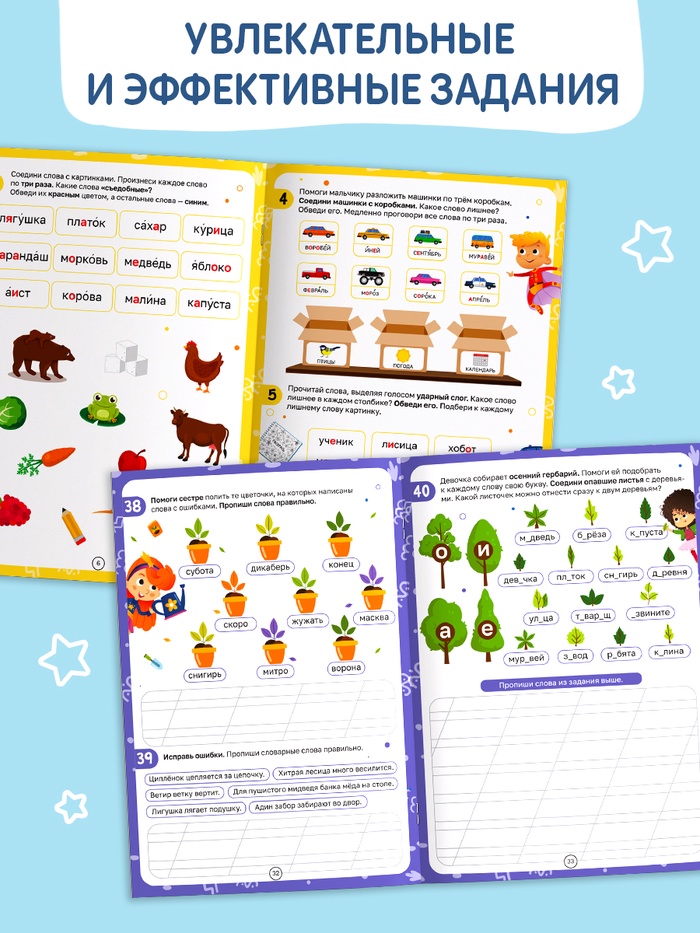 - Уникальные лайфхаки и интересные упражнения облегчают запоминание словарных слов и улучшают грамотность.