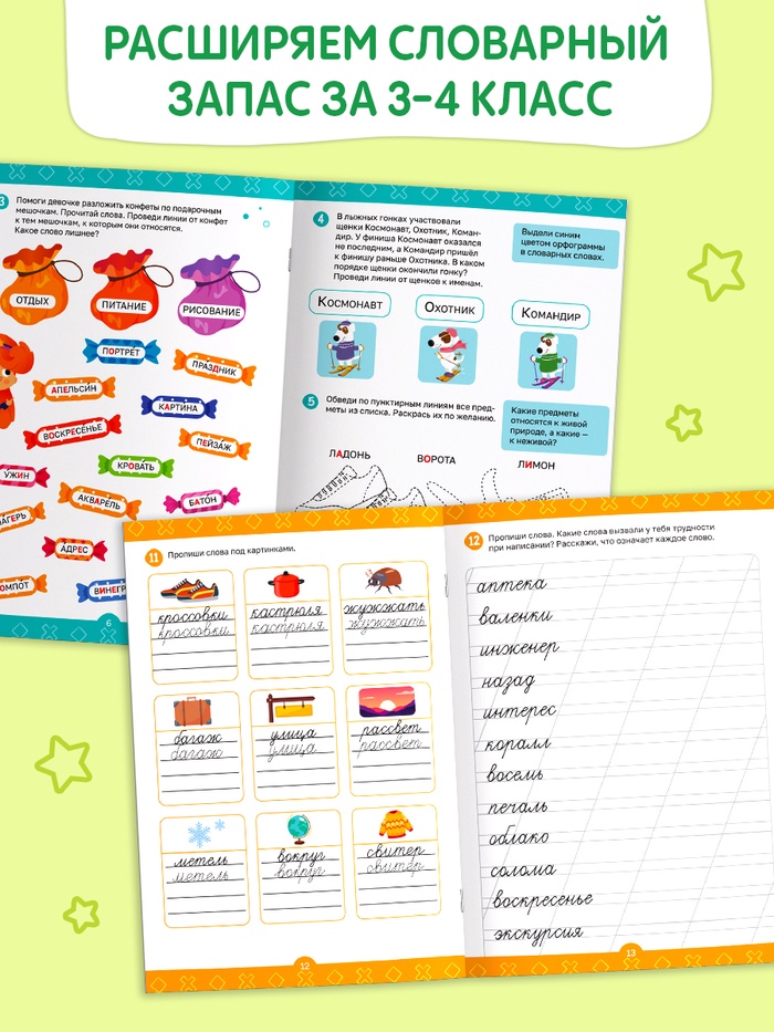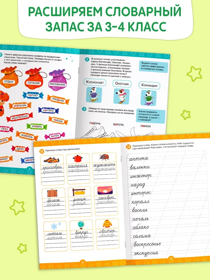 - Интересные упражнения и полезные лайфхаки облегчают запоминание словарных слов и улучшают навыки письма.