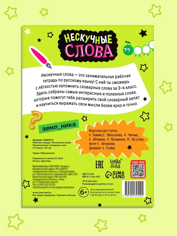 - 44 страницы с заданиями помогают детям от 6 лет развивать внимание и осваивать правила русского языка в игровой форме.