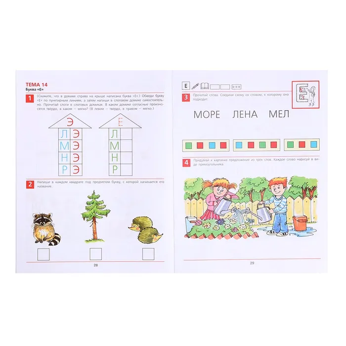 - Игровые задания для освоения букв и слов.