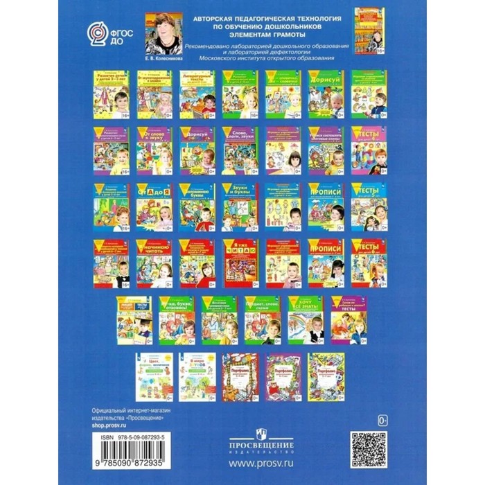Рабочая тетрадь «От А до Я», для детей 5-6 лет, Колесникова Е.В., 2024 — Характеристики