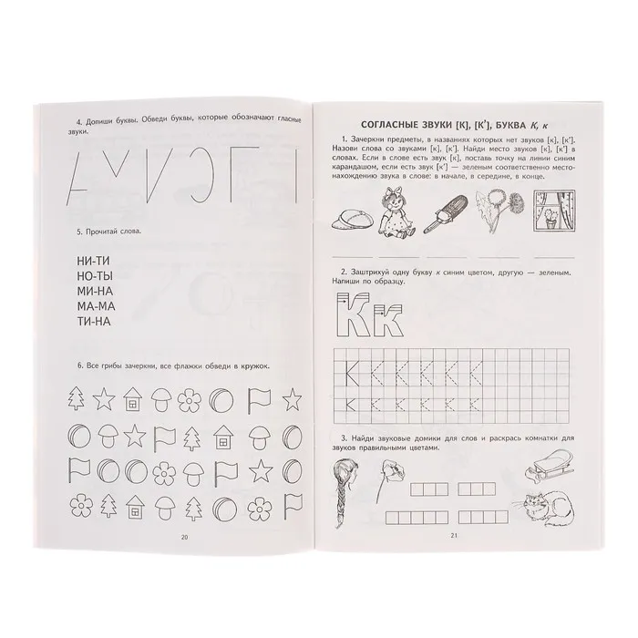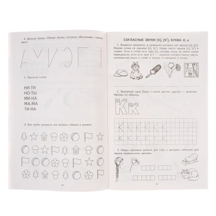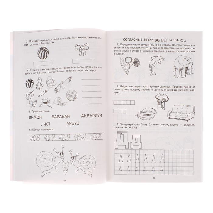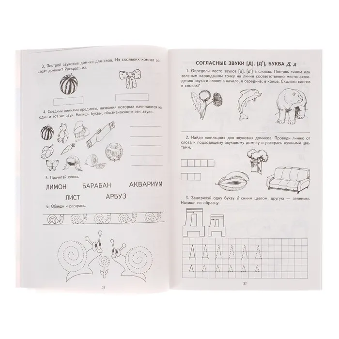 Тетрадь для обучения грамоте станет надёжным помощником для детей 5–7 лет, которые готовятся к школе или только начинают осваивать азы русского языка. Это пособие помогает ребёнку научиться различать звуки и буквы, выполнять простейший звуковой анализ слов и читать по слогам. Каждое задание выстроено так, чтобы обучение шло постепенно — от простого к сложному.