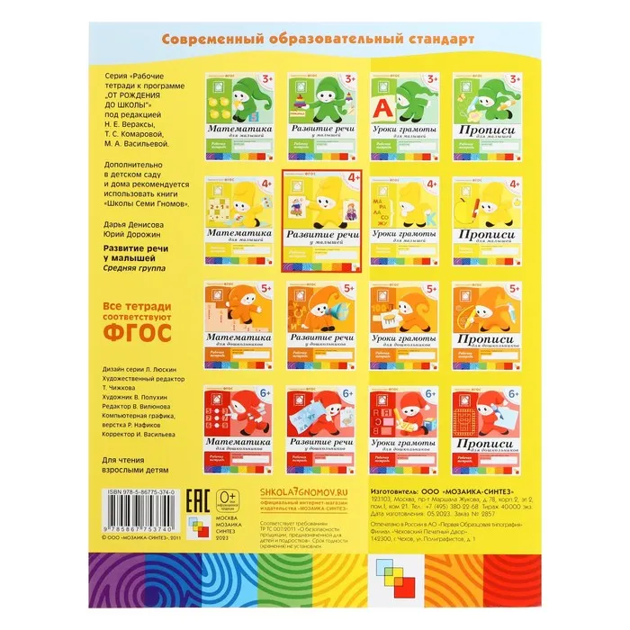 Издание на русском языке, мягкий переплёт и удобный формат для занятий дома и в детском саду.