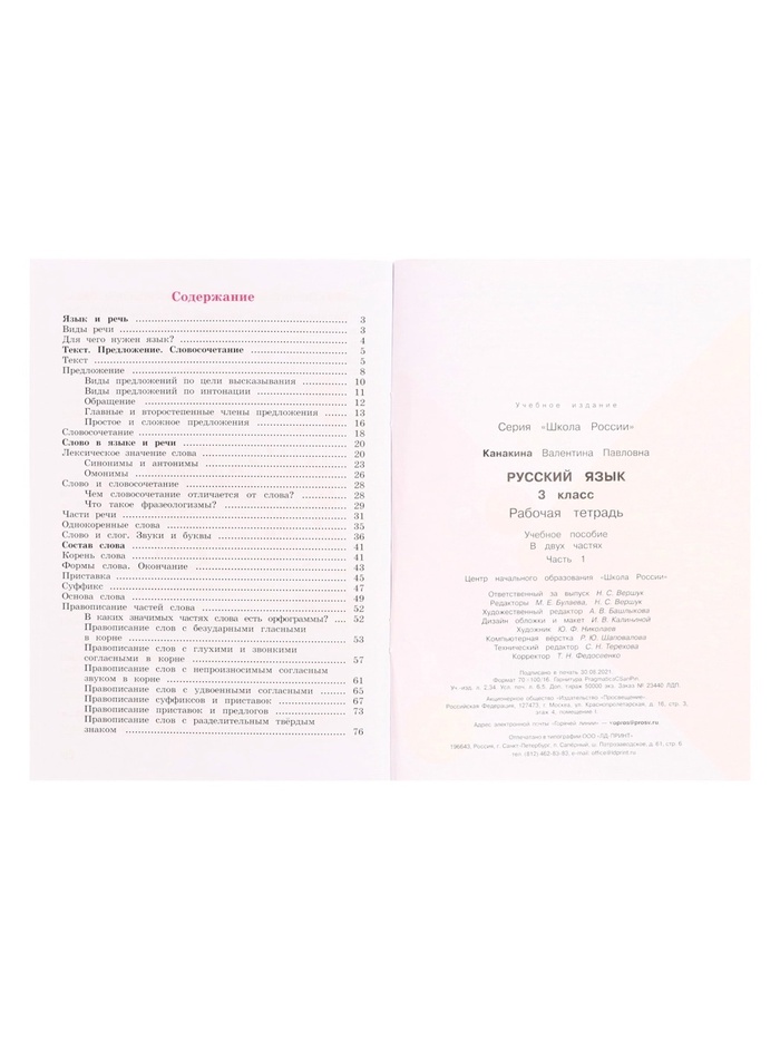 Рабочая тетрадь для учащихся общеобразовательных организаций соответствует учебнику «Русский язык. 3 класс» авторов В. П. Канакиной, В. Г. Горецкого.