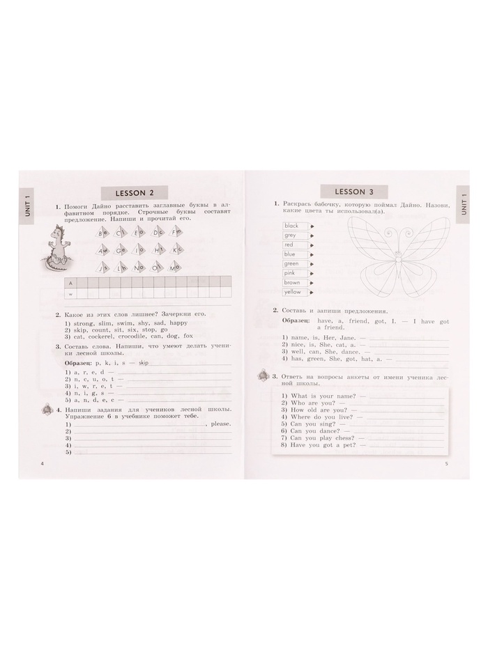 - Содержит упражнения для отработки грамматики, лексики и орфографии.