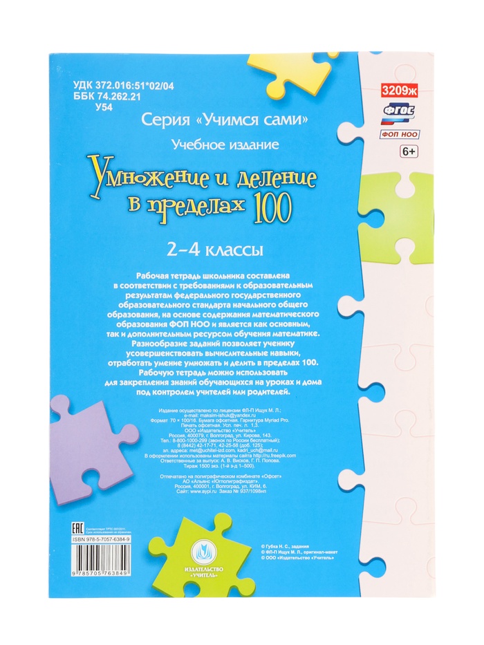 Рабочая тетрадь «Умножение и деление в пределах 100» — Характеристики