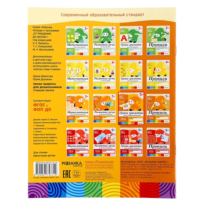 «Уроки грамоты» подойдут для занятий дома, в детском саду и на курсах подготовки к школе. Они помогут ребёнку уверенно разбираться в звуковом составе слов и подготовиться к чтению.
