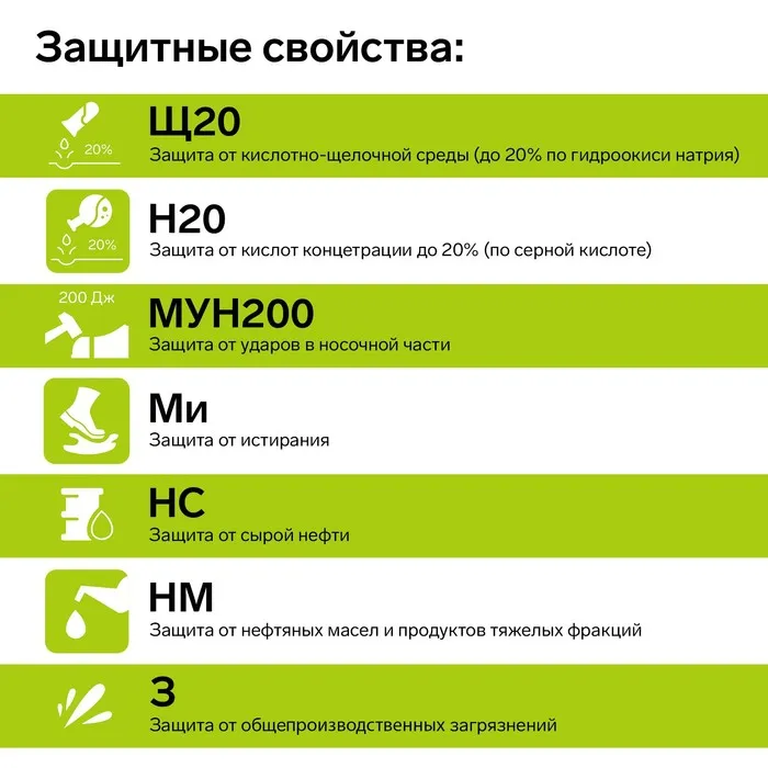 Кожаные сапоги Prosafe серии basic предназначены для защиты ног от общих производственных загрязнений. В модели предусмотрены боковые петли в верхней части голенища для удобного надевания. Подкладка и вкладная стелька изготовлены из текстильного сетчатого материала. Светоотражающие элементы повышают видимость работников в темное время суток, а также на неосвещенной территории. Однослойная маслобензостойкая полиуретановая подошва литьевого метода крепления имеет вставку в пяточной части подошвы, обладающую амортизационными свойствами и способную гасить ударные нагрузки при ходьбе. Глубина протектора ходового слоя обеспечивает хорошую сцепляемость с поверхностями и препятствует скольжению за счет рельефа протектора. Металлический подносок обеспечивает защиту пальцев стопы от механических повреждений ударной прочностью до 200Дж.