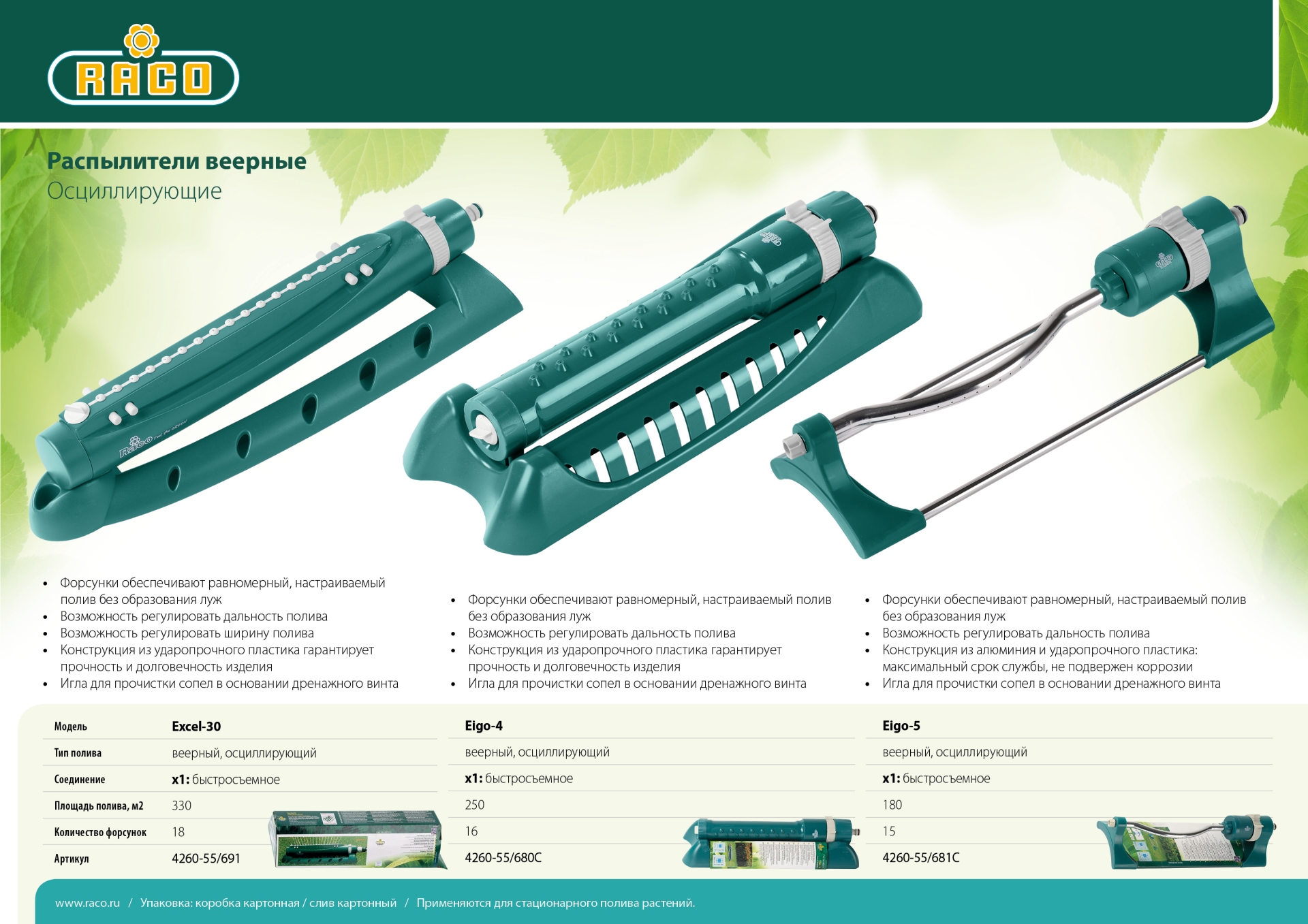 Осциллирующие распылители RACO обладают высоким уровнем качества, широкой возможностью регулировки площади полива, и встроенным фильтром. Надёжны в работе, служат долго, исключительно удобны в использовании. Обеспечивают простое и качественное подключение к поливочной системе. Снабжены специальной иглой для прочистки форсунок.