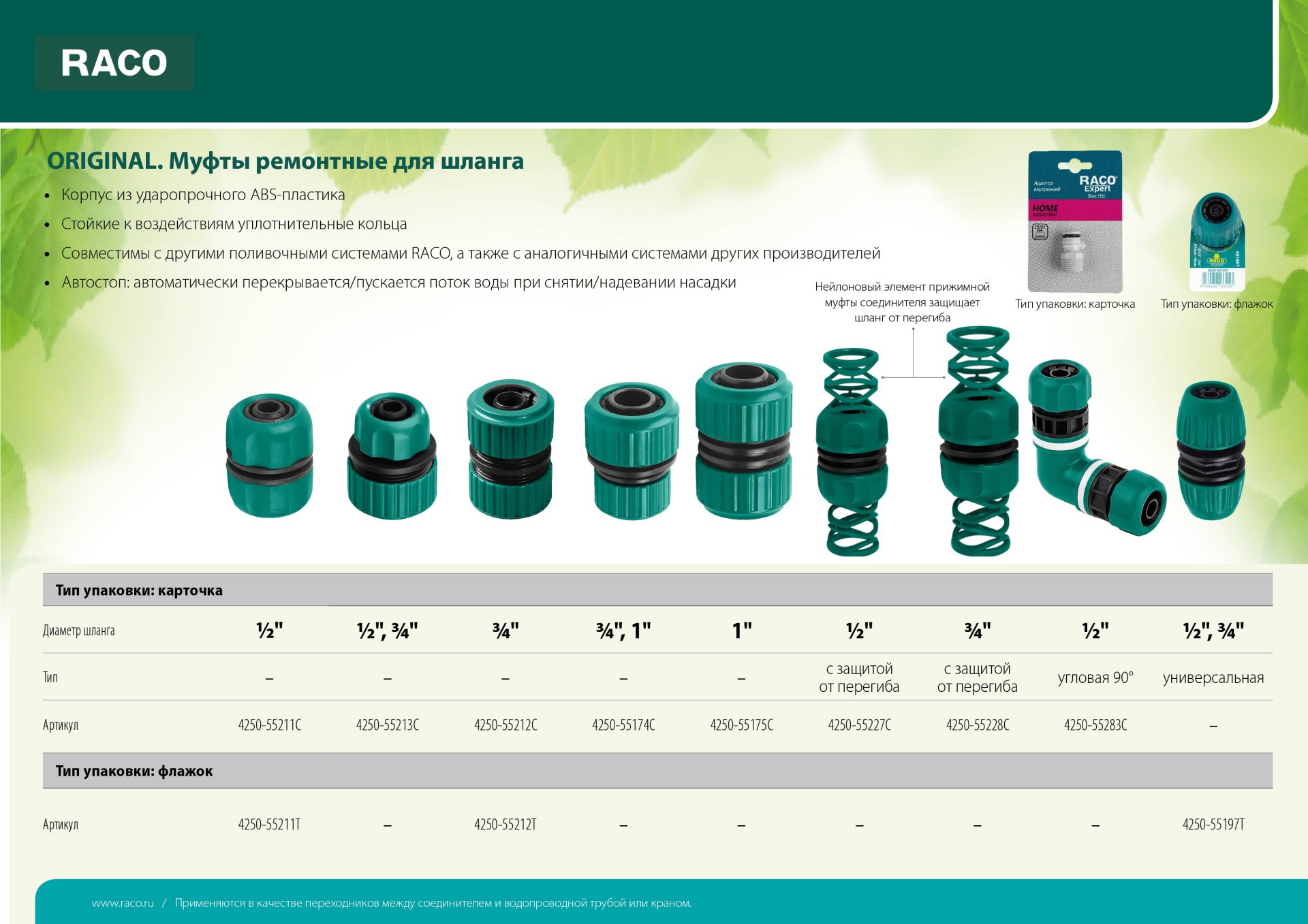 Применяются для быстрого и надежного соединения (удлинения) двух участков поливочного шланга диаметром 1/2″