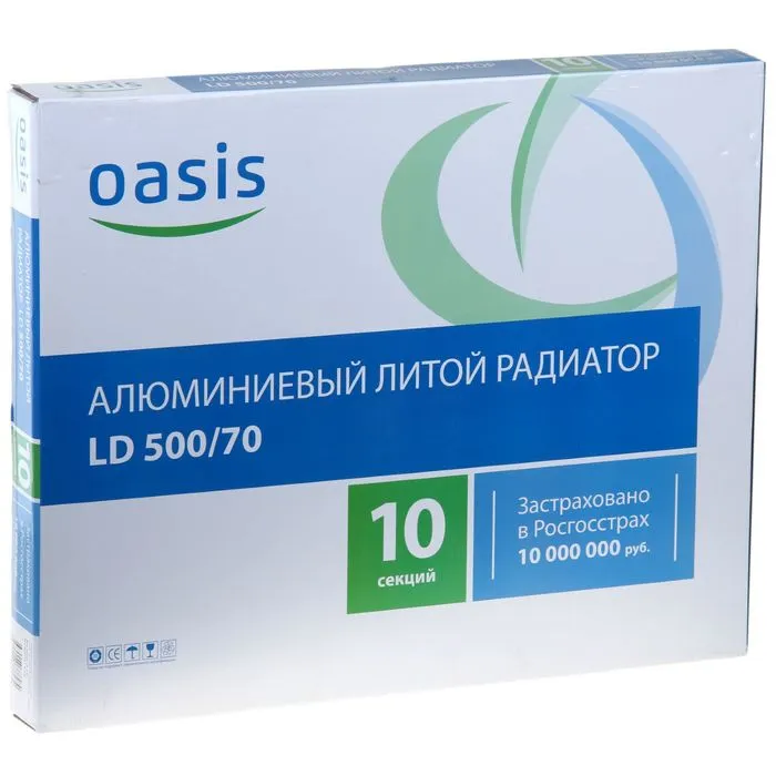 Радиатор алюминиевый Oasis, 500×70 мм, 10 секций — Характеристики