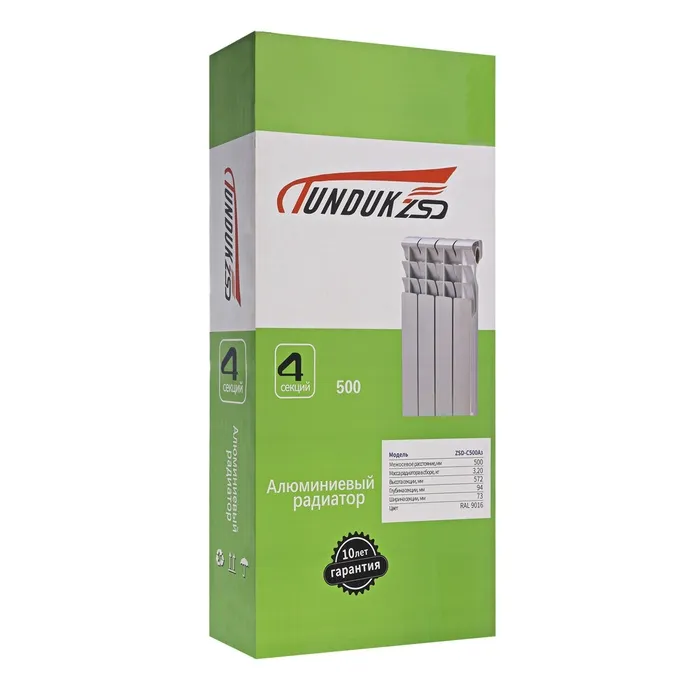 Радиатор алюминиевый TUNDUK 500×96 мм, 4 секции — Характеристики