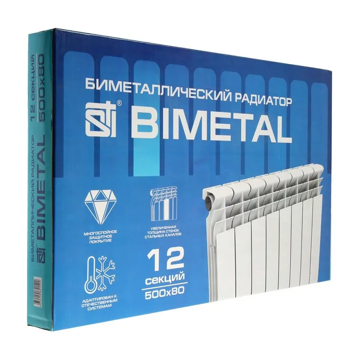 Биметаллические радиаторы предназначены для отопления помещений. Они представляет собой алюминиевые приборы с каркасом из стальных труб. Сплав двух металлов увеличивает срок службы устройств до 25 лет.