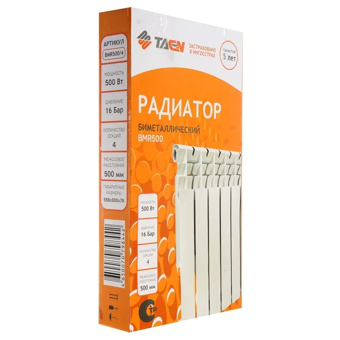 Радиатор биметаллический TAEN BMR, 500 х 78 мм, 4 секции, 500 Вт — Характеристики