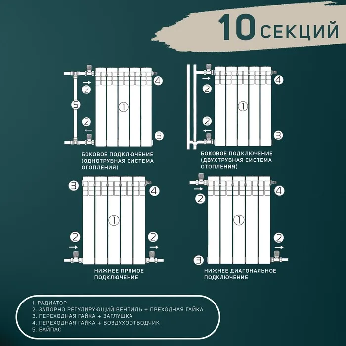 Радиатор Tropic 350x80 мм алюминиевый, 10 секций — Характеристики
