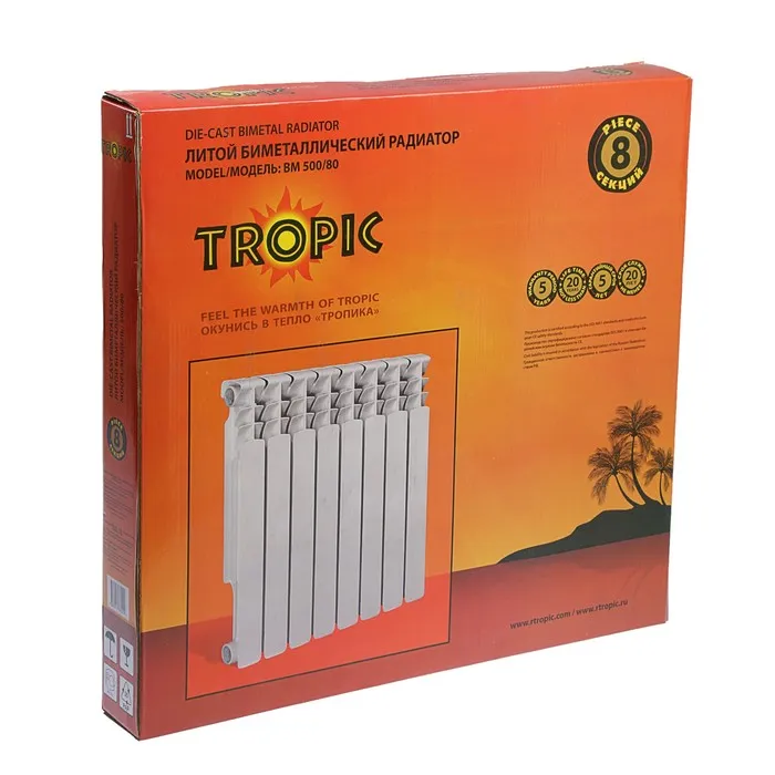 Радиатор Tropic 500x80 мм биметаллический, 8 секций — Характеристики