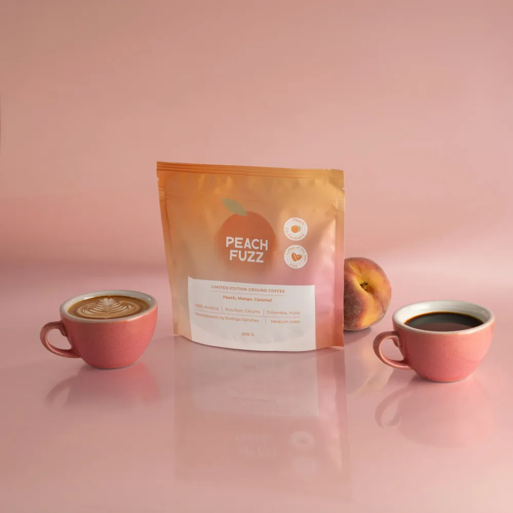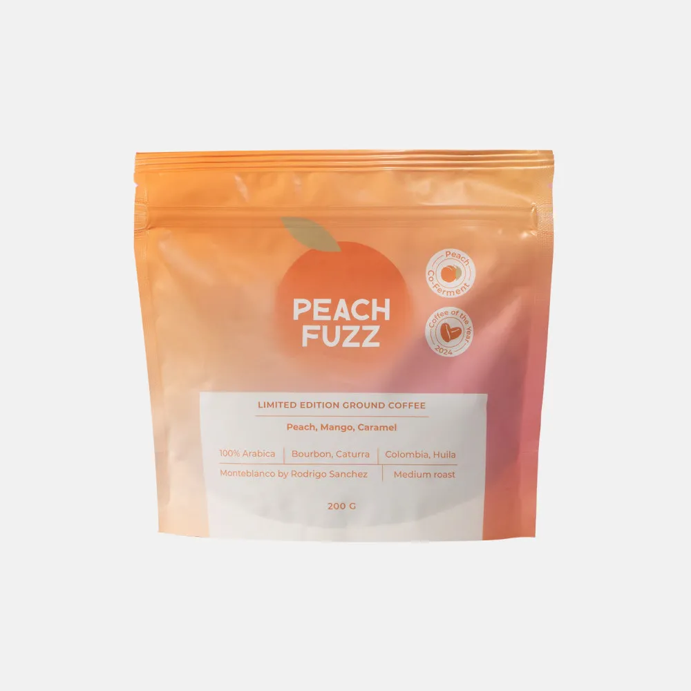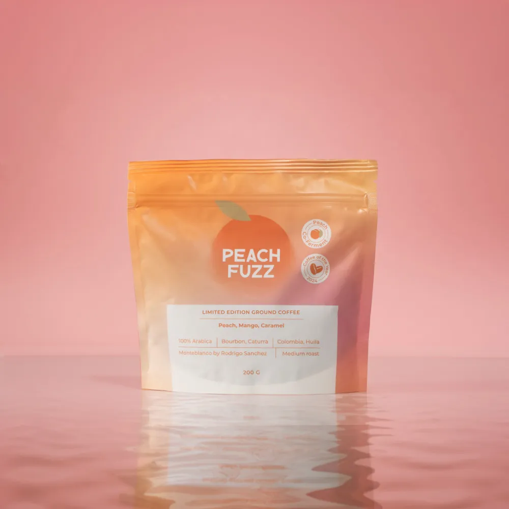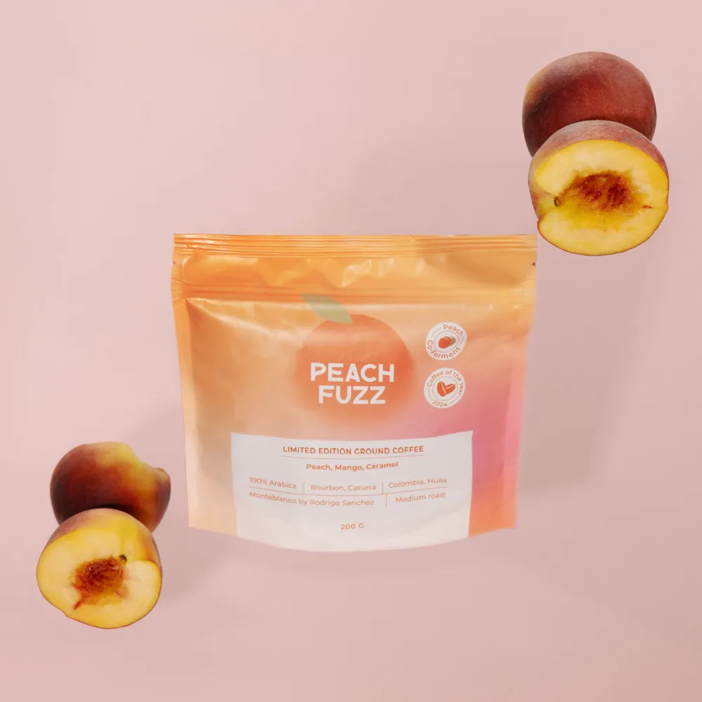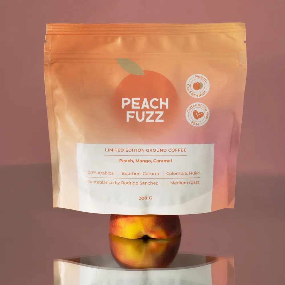 Этот кофе — дань уважения цвету года 2024 по версии Pantone под названием Peach Fuzz, и он изготовлен уникальным способом — ферментацией вместе с персиками!