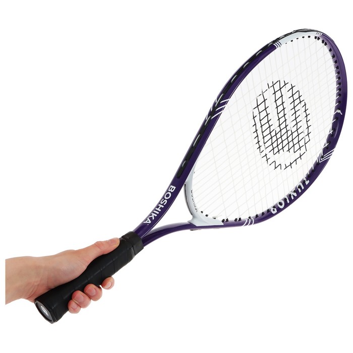 Ракетка изготовлена из алюминия, этот материал обеспечивает прочность и долговечность. Ручка выполнена из вспененного полиуретана с накладкой. Эргономичная форма обеспечивает надёжный захват и точный контроль снаряда. Детская модель подходит для начинающих, продолжающих игроков и любителей.
