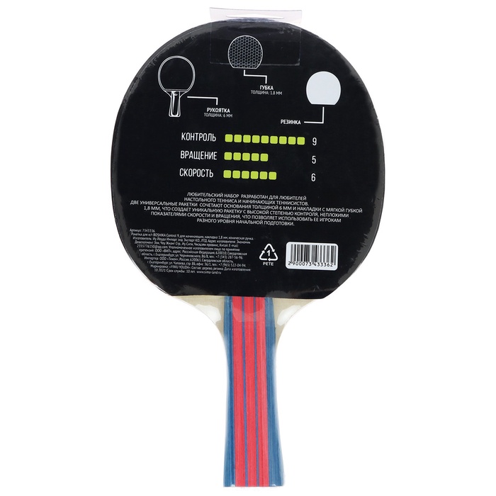 Ракетка для настольного тенниса BOSHIKA Control 9, для начинающих, губка 1,8 мм, коническая ручка — Характеристики