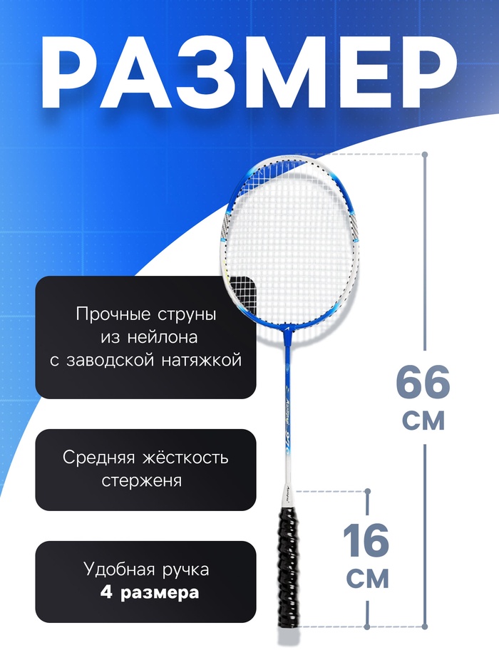 Ракетки для бадминтона ONLYTOP, алюминий, набор 2 шт., в чехле, цвет синий/белый — Характеристики
