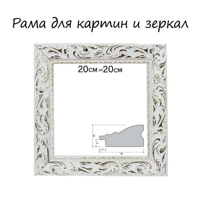 Рама для картин (зеркал) 20 х 20 х 4 см, дерево "Версаль", бело-золотая — Характеристики