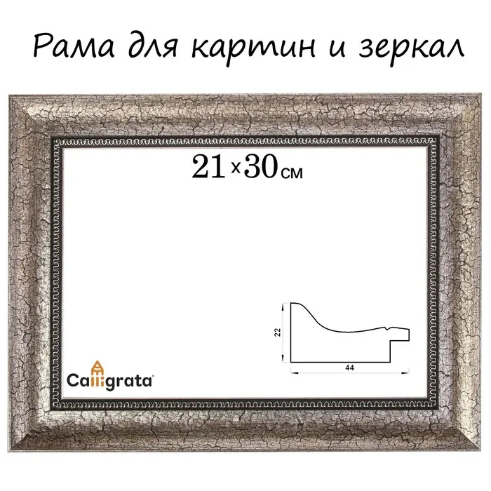 Рама для картин (зеркал) 21 х 30 х 4,4 см, пластиковая, Calligrata 6744, серебристая — Характеристики