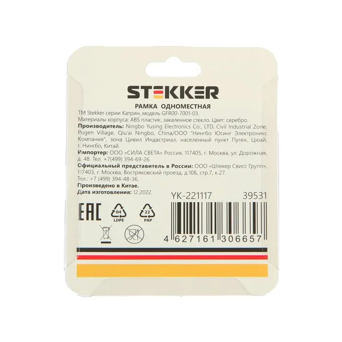 Рамка 1-местная, стекло, STEKKER серия Катрин, GFR00-7001-03, серебро — Характеристики
