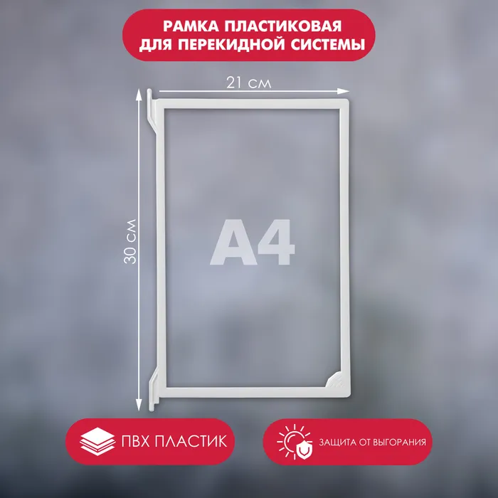 Пластиковая рамка со встроенными фиксаторами для крепления в держателях демосистемы. Формат - А4. Толщина держателя 6 мм. Сочетает элегантный внешний вид и высокую прочность. Используется со стандартным антибликовым пластиковым протектором формата А4.