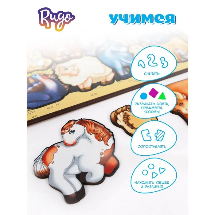 Рамка-сортер «Животные», 16 деталей, размер: 24,2 × 17,7 см — Характеристики