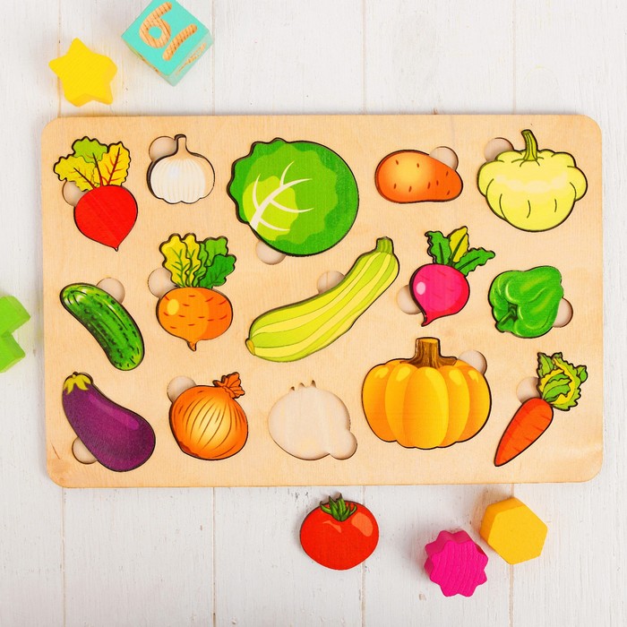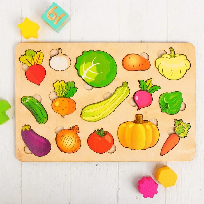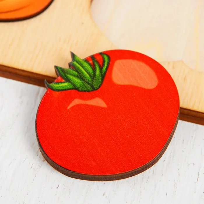 В наборе 15 вкладышей с яркими изображениями овощей. В игровой форме малыш запомнит их названия и расширит кругозор.
