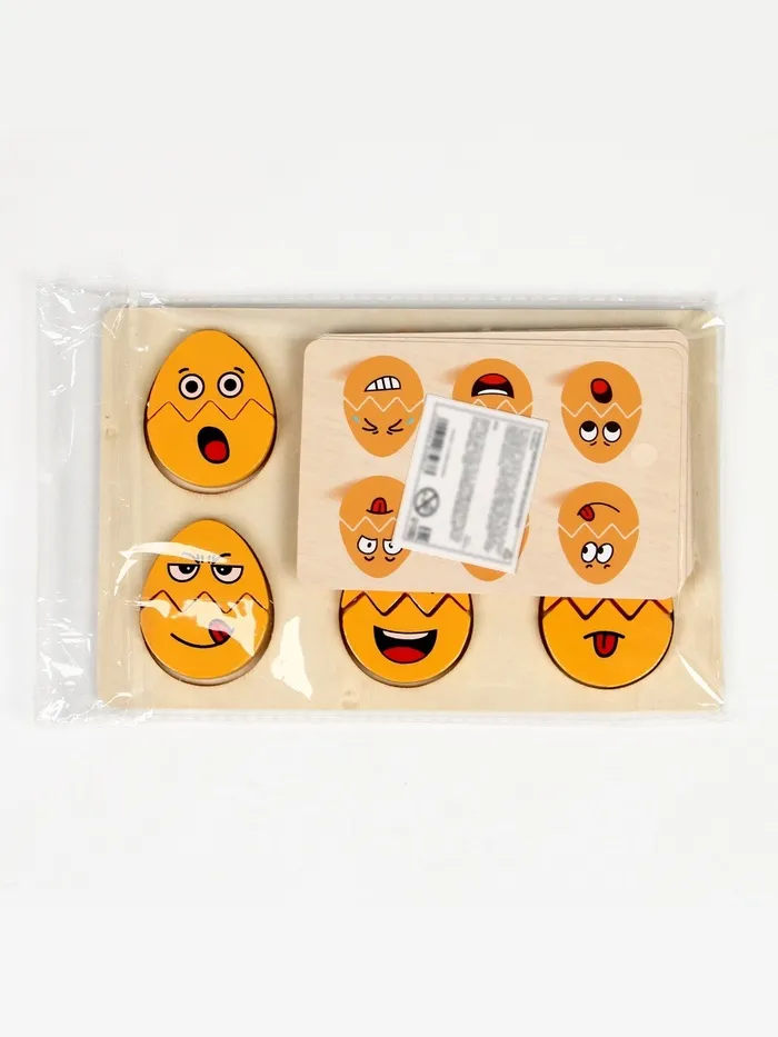 Набор «Яица» — это увлекательная и развивающая игра для детей от 3 лет. В комплекте вы найдёте деревянную рамку, карточки с примерами сборки и деревянных вкладыши с разными эмоциями. Игра помогает развивать фантазию, мелкую моторику и эмоциональный интеллект ребёнка.