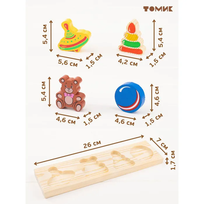 Деревянная рамка-вкладыш «Игрушки» станет отличным выбором для детей от 3 лет. Игрушка выполнена из натурального дерева, что делает её безопасной, приятной на ощупь и экологичной. Она включает 4 элемента в виде детских игрушек, которые нужно вставить в соответствующие выемки, — это увлекательный процесс, который привлекает внимание детей и помогает развивать полезные навыки.