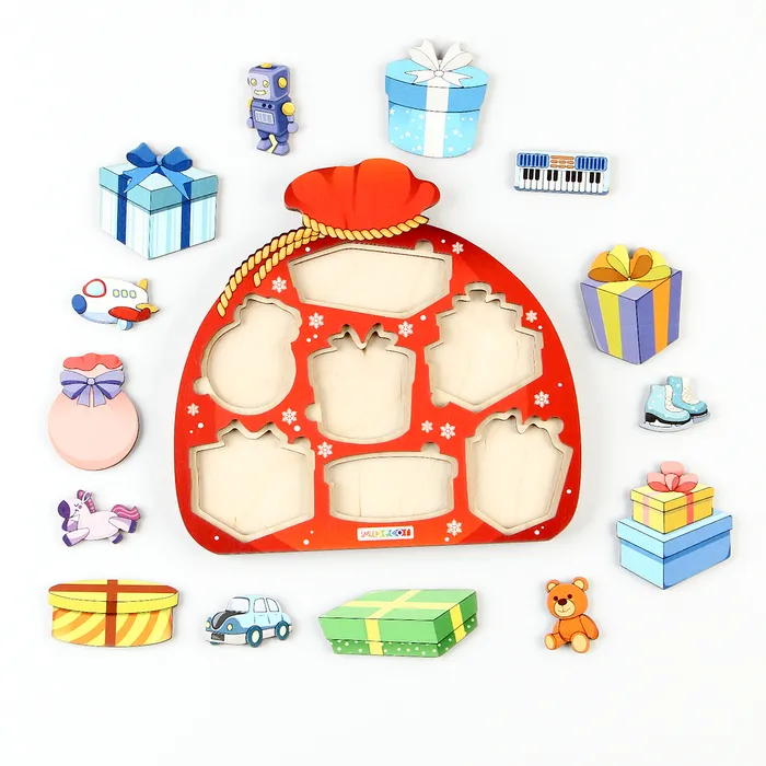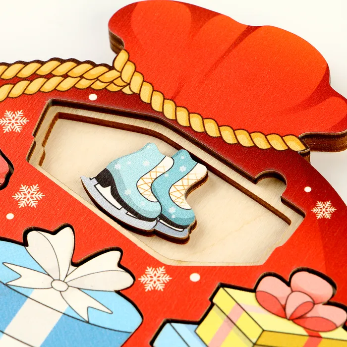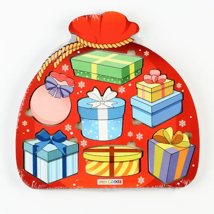 Рамки-вкладыши «Мешок с подарками» станут идеальным подарком для ребёнка на Новый год! Также эту игрушку можно приобрести в подарок детям на новогодний утренник в детском саду. Рамки-вкладыши выполнены из натурального дерева, которое полностью безопасно для малышей. Рамка имеет оптимальный размер для маленьких ручек, фигурки легко вставляются и вынимаются, а яркие цвета привлекут внимание ребёнка и сделают игру более увлекательной.