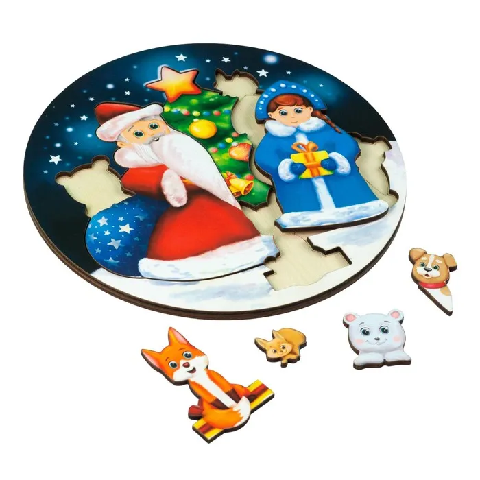 Рамка-вкладыш «Новогодний» — это безопасная и увлекательная игрушка, которая способствует развитию мелкой моторики и координации у детей от 3 лет. Она состоит из 7 элементов, выполненных из натурального дерева.