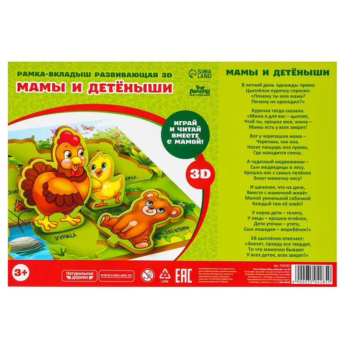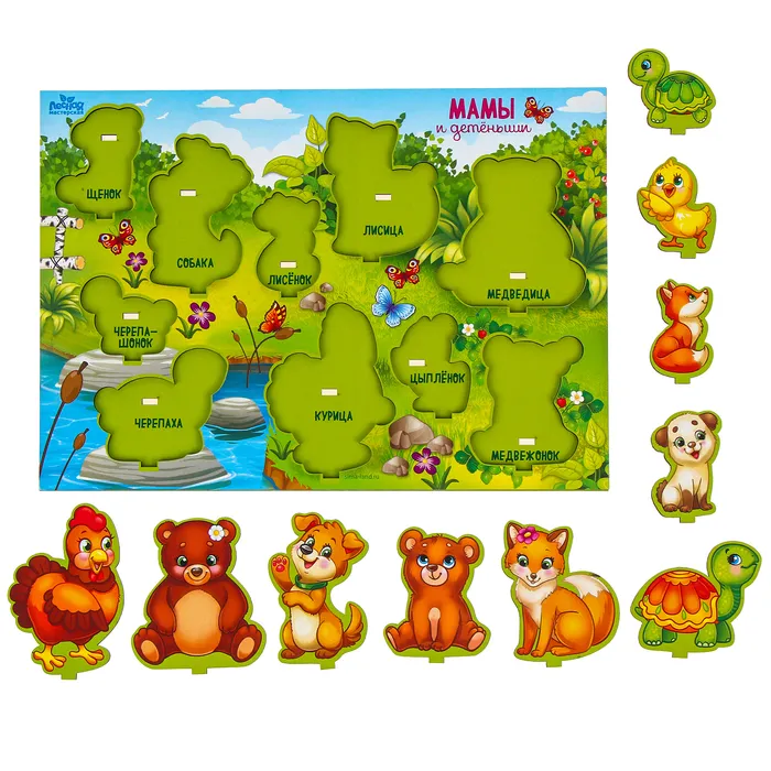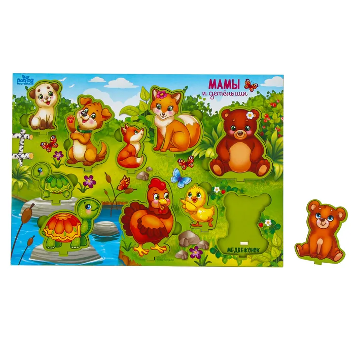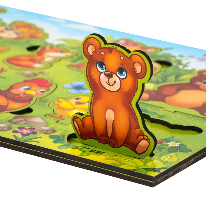 Занятия с рамкой развивают мелкую моторику, воображение, координацию движений. В процессе игры малыш познакомится с животными, изучит соотношение "больше-меньше".