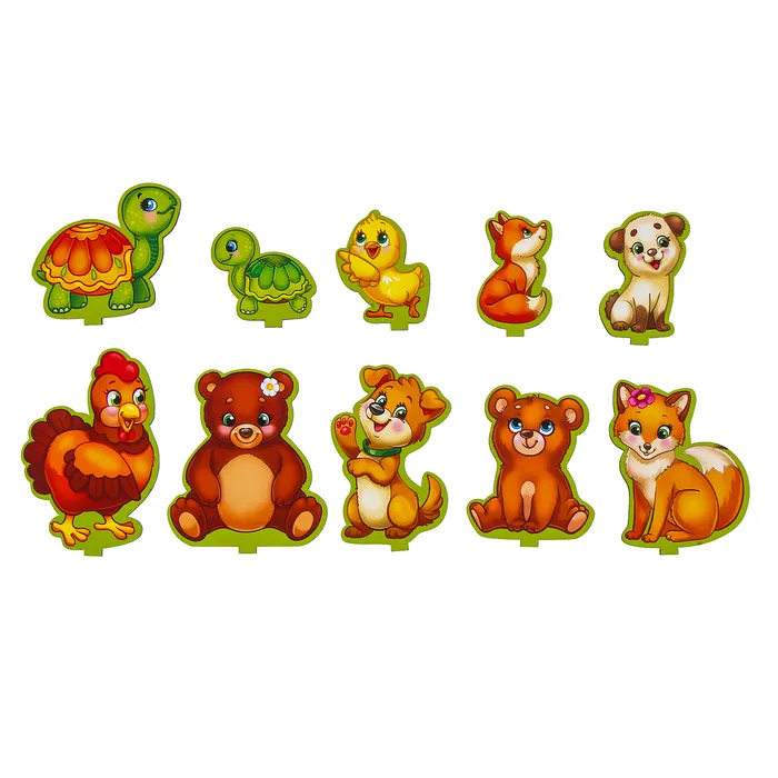 Перед началом игры рассмотрите вместе с ребёнком игровое поле, фигурки. Придумывайте истории про животных и заполняйте рамку.