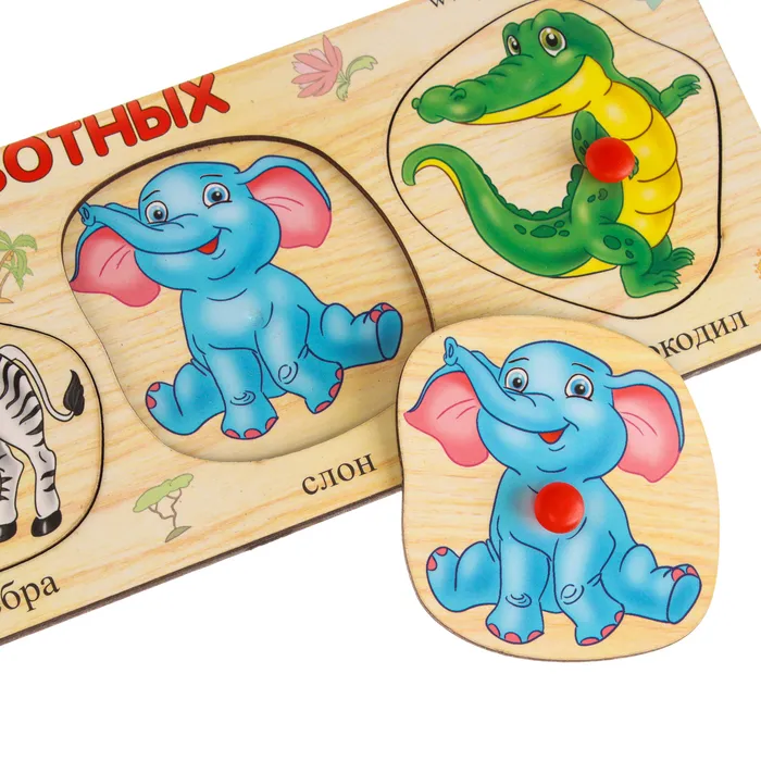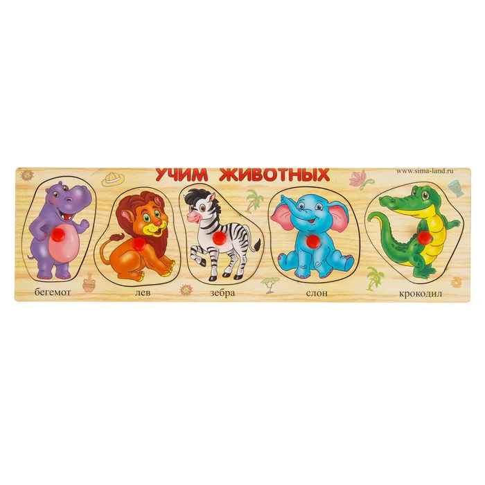 Для малыша мир полон удивительных загадок и открытий, увлекательных головоломок и постоянного поиска решений. Поддержать эту врожденную любознательность помогут крохе развивающие игрушки. Рамка – вкладыш "Учим животных" познакомит вашего малыша с животными Африки и поможет выучить их названия. Под каждым животным есть подпись, и со временем малыш научится не только узнавать картинки, но и читать.