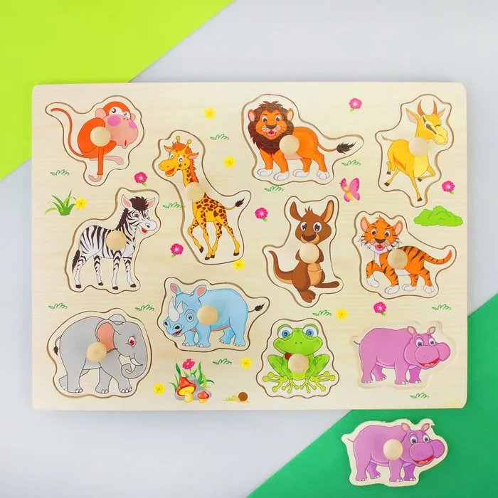 С помощью рамки-вкладыша ребёнок познакомится с животными нашей планеты. Для большей продуктивности занимайтесь вместе с ребёнком, расскажите о среде обитания зверей и чем они питаются.