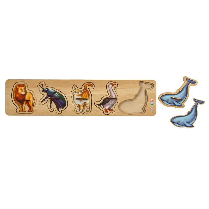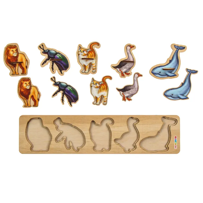 Этот набор не просто игрушка, а практическое пособие, которое помогает ребёнку сосредотачиваться, анализировать и принимать решения. Подбирая элементы к рамке, малыш учится замечать детали, различать формы и запоминать цвета. А благодаря тематике животного мира игра пробуждает интерес к окружающей природе и знакомит ребёнка с её обитателями.