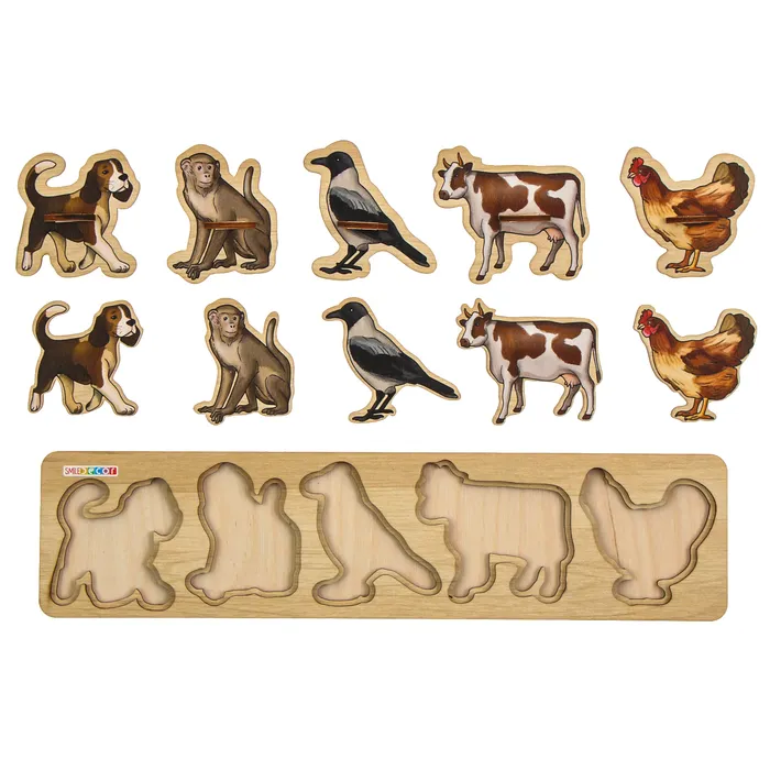 Положите рамку перед ребёнком и предложите ему сопоставить детали с вырезами. Чтобы сделать процесс ещё интереснее, расскажите малышу увлекательные истории о животных на вкладышах. Это не только расширит кругозор ребёнка, но и сделает обучение лёгким и увлекательным.