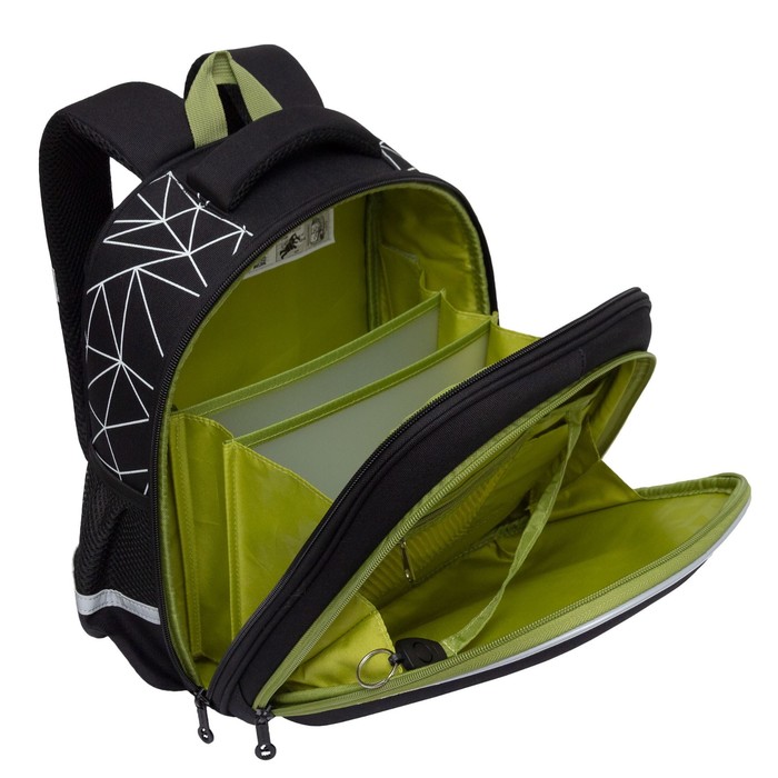 В него поместятся все школьные принадлежности. Основное отделение разбито на три отсека: для книг, тетрадей и папок А4. В дополнительное помещается сменка (есть три кармашка для мелочей). В боковых можно носить воду или перекус. Каждый предмет на своем месте. Ранец отлично подойдёт для первоклассника.