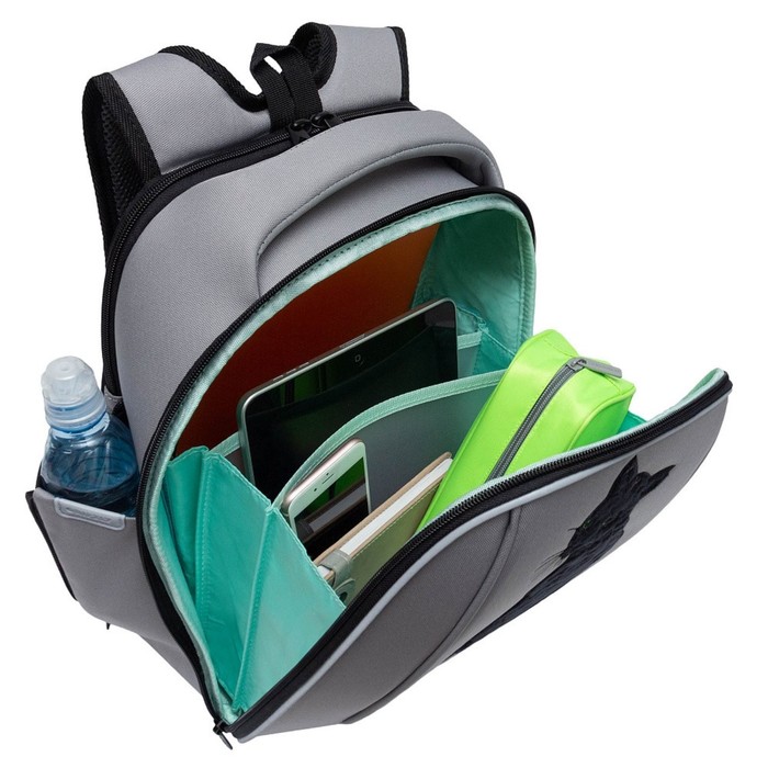 Ранец каркасный, 36 х 29 х 18 см, Grizzly, + брелок, плюшевый, серый — Характеристики