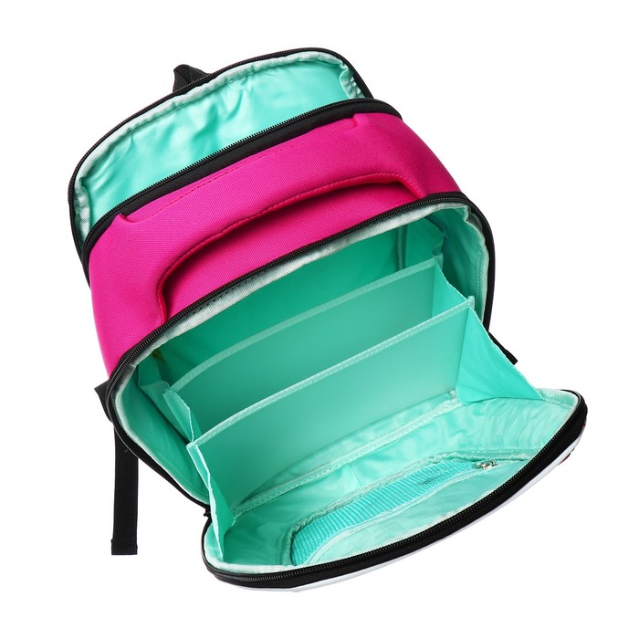 У школьного рюкзака формованная лицевая часть, жесткая анатомическая спинка и жесткое дно на ножках. Содержимое надежно защищено. А еще такая конструкция равномерно распределяет нагрузку на спину. Чтобы не уставали руки и плечи, мы сделали широкие лямки и нагрудную стяжку. Конструкция детской сумки не деформируется при нагрузке и создает надежную защиту содержимого. У школьного рюкзака два отделения. Основное отделение разбито на три отсека: для книг, тетрадей и папок А4, есть карман из сетки на молнии. Дополнительное жесткое отделение не даст помяться ценным вещам. Для безопасности в темное время суток мы добавили со всех сторон светоотражающие элементы. За счет водо- и грязеотталкивающей пропитки ранец долго остается как новый. Если он все же чем-то испачкался, мы рекомендуем ручную стирку в холодной воде.
