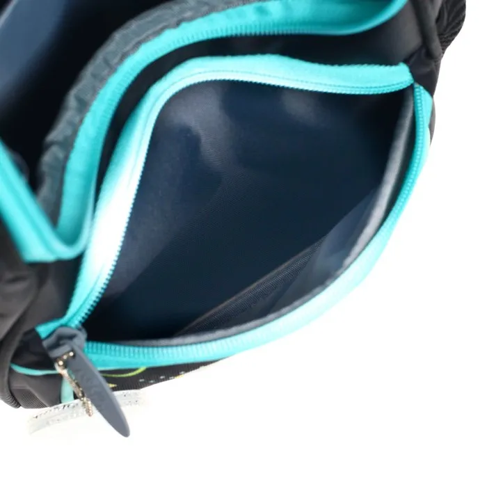 Боковые стенки ранца, усиленные деталями из ПВХ, жёсткое формованное дно и формованный верхний клапан делают изделие более прочным и защищают содержимое от механических повреждений. Мягкая анатомическая спинка, изготовленная из "дышащих" материалов и регулируемые плечевые лямки обеспечивают комфортную посадку ранца на спине ребёнка. Возможна комплектация нагрудной стяжкой. На передней поверхности, боковых стенках и на лямках присутствуют световозвращающие элементы, дополняет их брелок-катафот. Рюкзак укомплектован мешком для обуви с аналогичным принтом