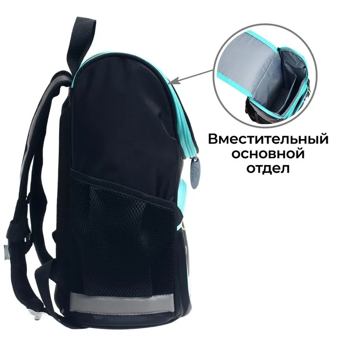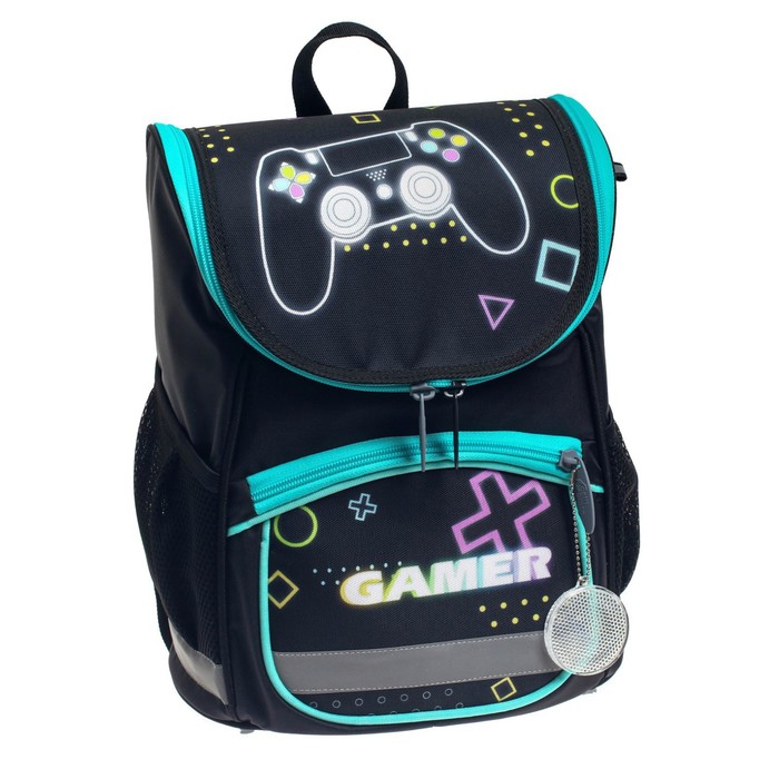 Ранец школьный Стандарт, 36×26×16 см, + мешок для обуви 40×32 см, Calligrata П «Гейм», чёрный — Характеристики