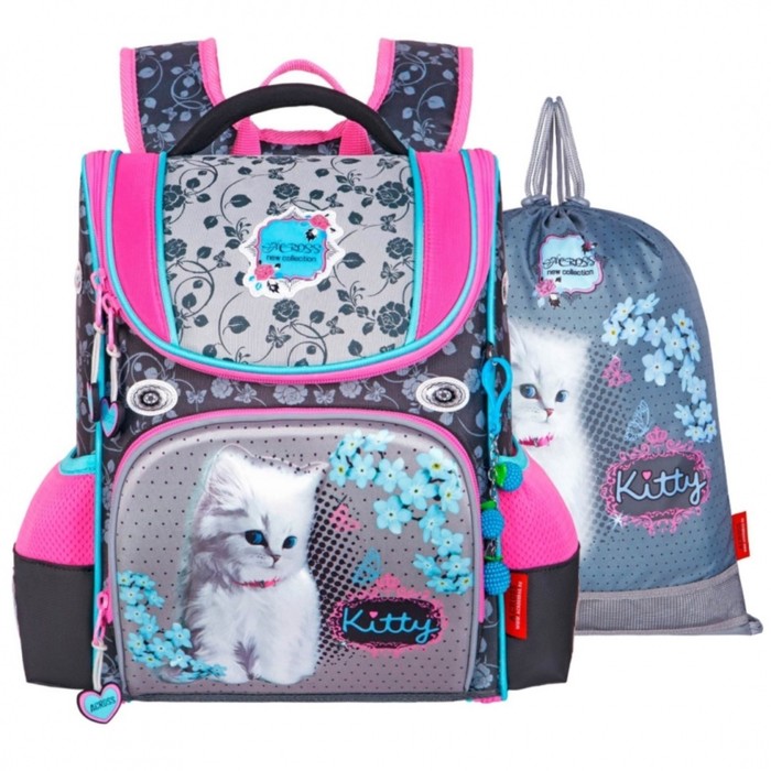 Ранец школьный Стандарт, раскаладной, 35 х 22 х 12 см, Across 191, наполнение: мешок, серый/фиолетовый ACR22-191-7 — Характеристики