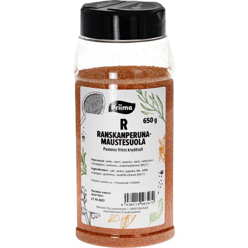 Приправа Priima упакована в удобную банку объёмом 650 г, из которой легко дозировать продукт.