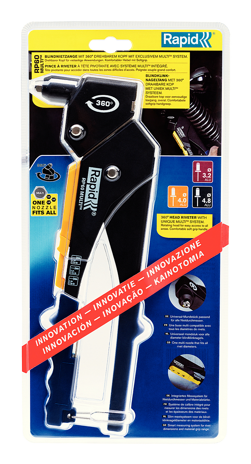 Наслаждайтесь эффективной работой с заклепками при помощи единственного инструмента. Благодаря уникальной многофункциональной насадке, механический заклепочник RP60 Multi может работать без смены насадок. Кроме того, он оснащен вращающейся на 360° головкой, что облегчает работу в ограниченных пространствах. Это означает меньшее количество простоев и оптимальные результаты при работе с любым видом листового металла. RP60 Multi также оснащен интеллектуальной измерительной системой, которая измеряет размеры заклепок и толщину материала. Теперь вы можете быть уверены, что используете подходящую заклепку в соответствующем ей отверстии. Среди других отличительных черт инструмента мягкая рукоятка для максимального комфорта, закаленные металлические детали для долгого срока службы и стильная черная матовая отделка.